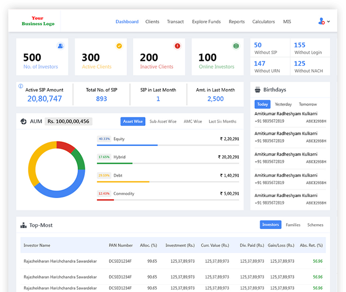 Comprehensive CRM module keeping in mind requirements of a wealth management firms. Various modules which help to increase your business like Co-Branding, RM/Subbroker incentive programs, etc.